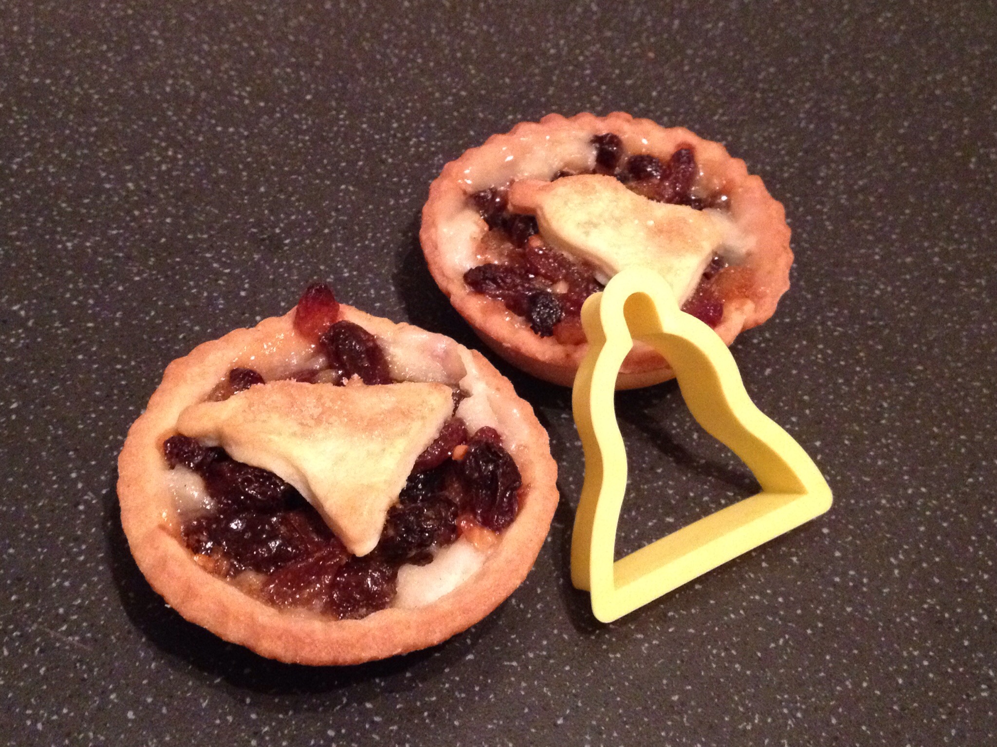 I topped some with pastry bells- using the gift from my Christmas dinner cracker! These ones have a disc of marzipan underneath the mincemeat.